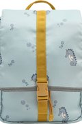 abelab's Backpack - Small - Under The Sea is great for going on little trips and adventures. The backpack holds a front pocket with a zipper for smaller items and easily closes with a drawstring and front flap-over buckle closure.