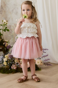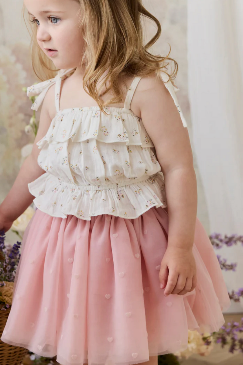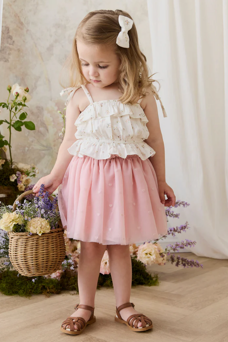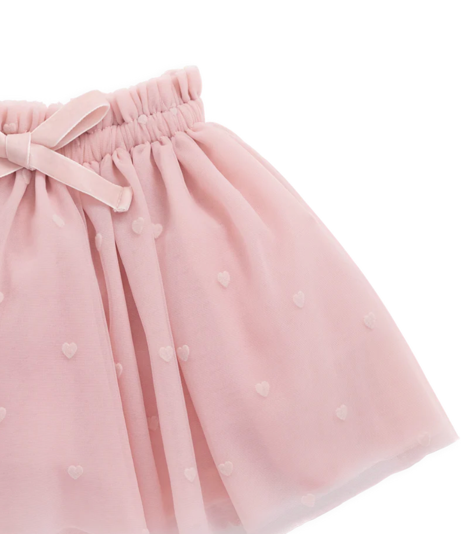 Add a touch of dreamy elegance to your little one’s wardrobe with our Lottie Skirt in Petite Heart Carnation. Featuring a floaty silhouette and delicate heart motifs, this piece is perfect for special occasions or creating a whimsical everyday look.