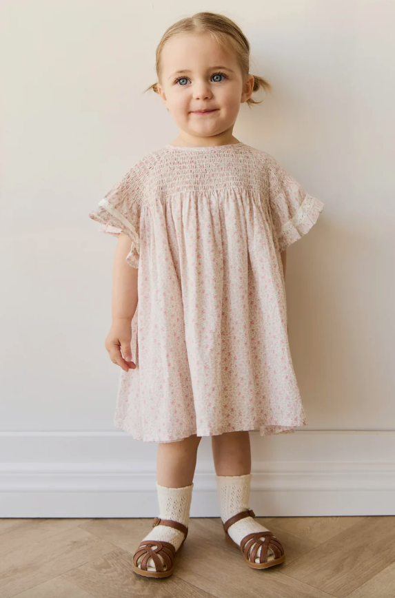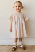 Malia Dress is a charming floral dress, featuring a billowy silhouette and ruffle sleeves that keep your little ones cool and comfortable in hot weather. Perfect for sunny days, this dress combines breathability with delicate design elements for everyday wear.