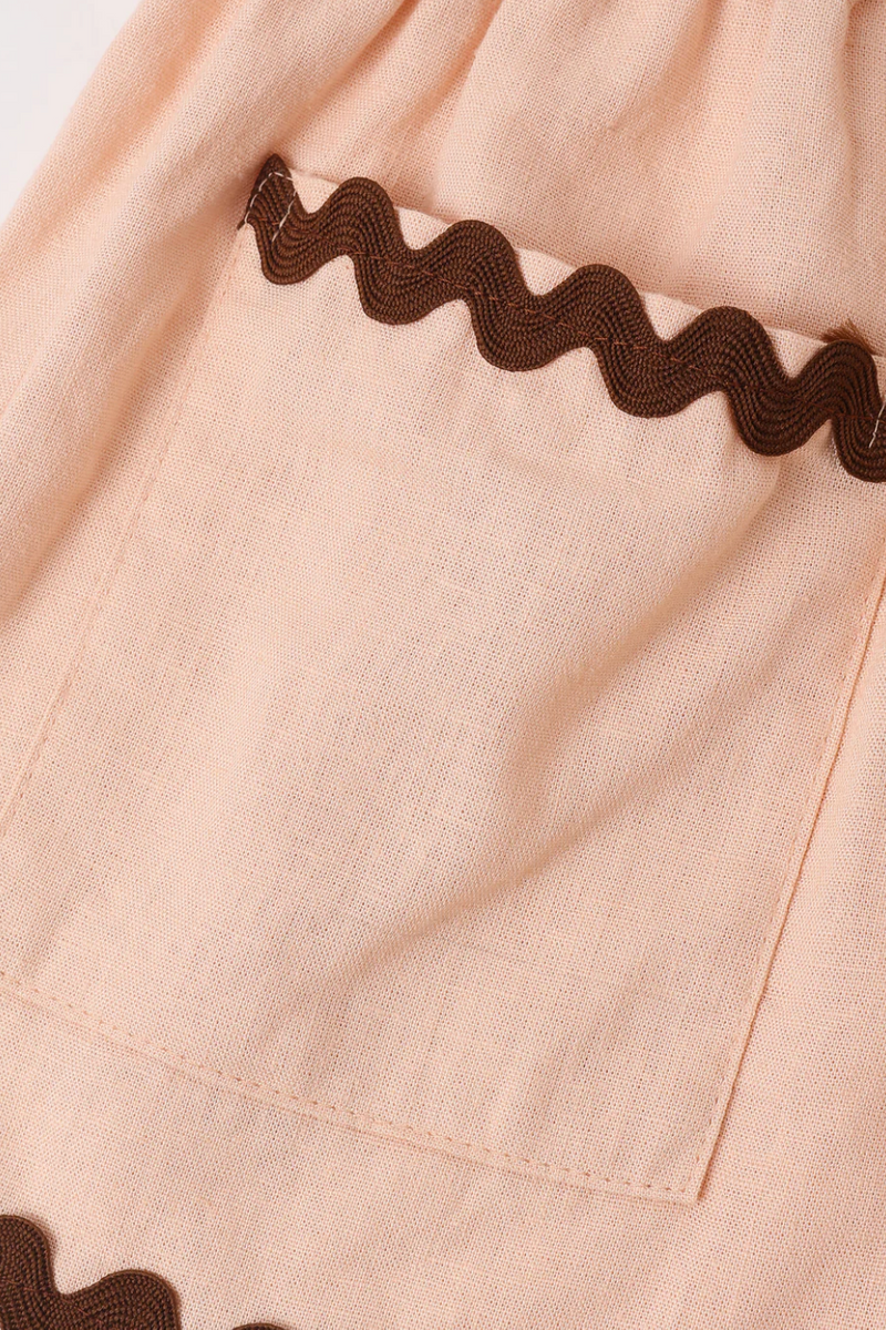 Featuring our ‘blush’ hue with 'chocolate' ric rac seams.