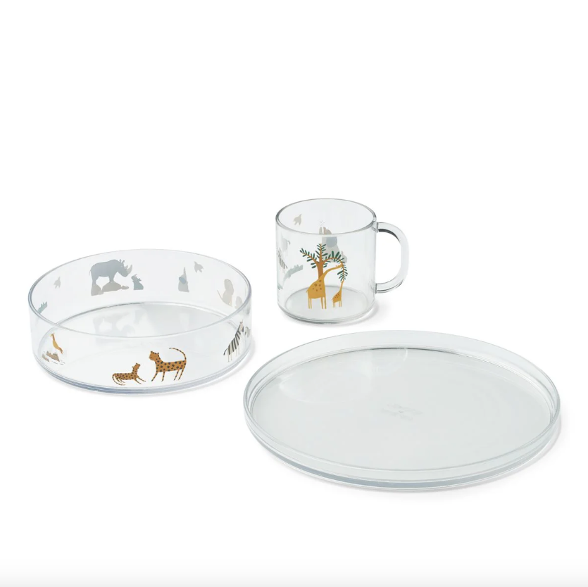 The printed tritan tableware set is made in a vibrant, glasslike quality that is both shatterproof and long-lasting. This dishwasher-safe set includes a Uma Plate, Nara Bowl, and Tomo Cup, each adorned with printed signature motifs, making mealtime fun and easy.