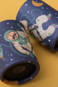 A fly eye lens with an illustration of an astronaut. An ideal kaleidoscope gift and travel entertainment. Designed and manufactured in Europe