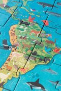 The puzzle includes an observation game. Once assembled, young adventurers can choose an expedition and take on the challenge of becoming zoologists, searching for and finding animal species to photograph them.