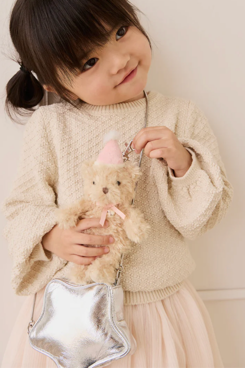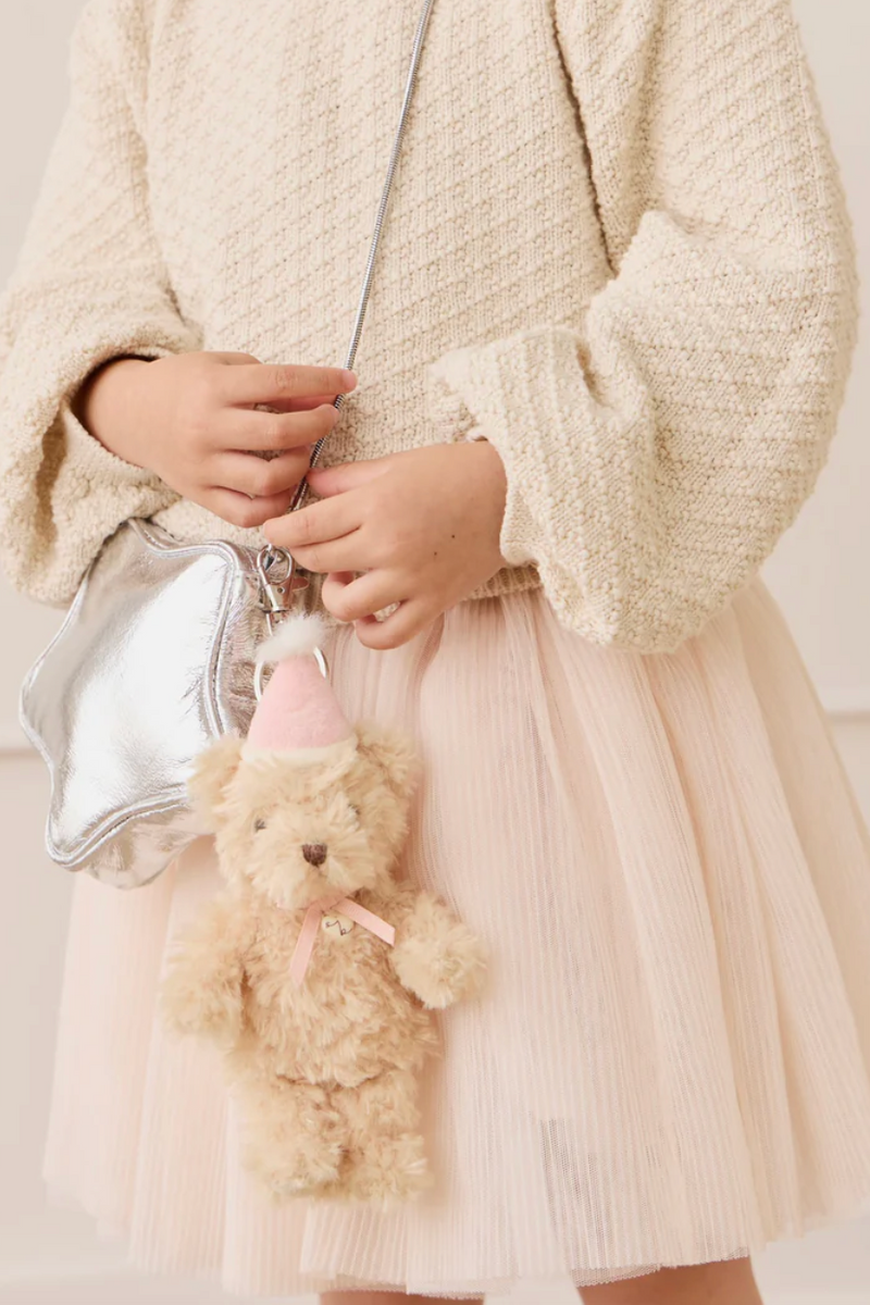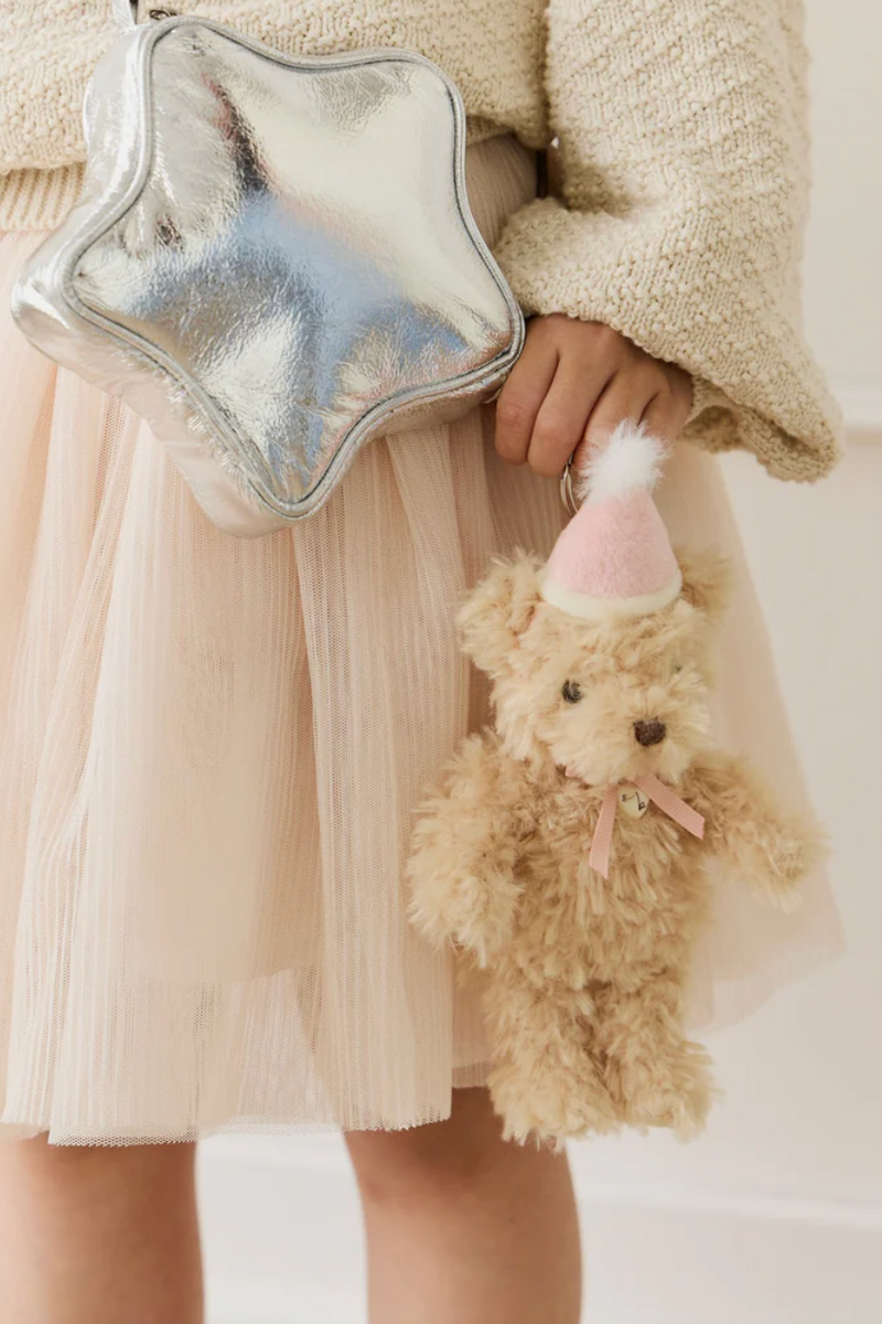 Meet Arthur the Bear, a thoughtful little friend who loves fishing, baking sweet treats, and practicing his times tables. With his soft, shaggy beige fur, gentle embroidered features, and a cute pink party hat, Arthur is ready for endless cuddles and imaginative adventures. Now perfectly sized as a portable keyring, he’s the ideal companion for every outing and a wonderful birthday gift.
