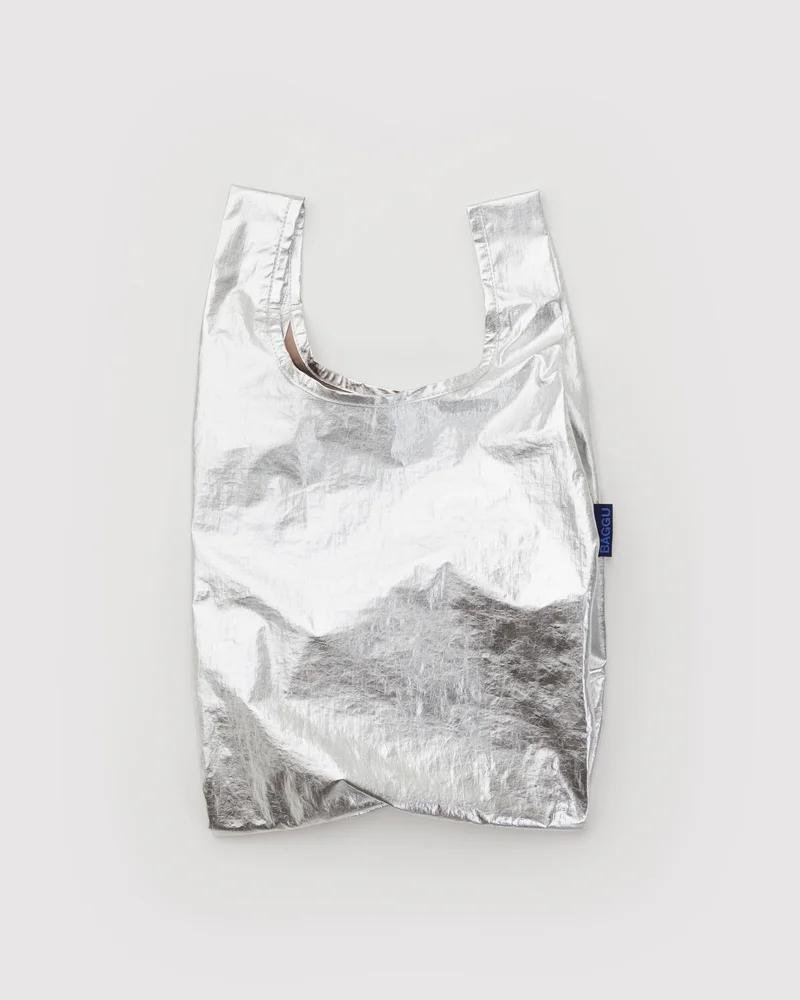 Starting with our Spring 2022 collection, all of our ripstop nylon styles are now made with 100% recycled nylon filament yarn (up from 40% recycled before). This 100% recycled nylon yarn is produced from pre-consumer waste, which saves scrap material from being landfilled — meaning every Standard Baggu is now made entirely from nylon that would otherwise go to a landfill. This also conserves petroleum resources, and reduces greenhouse gas emissions.