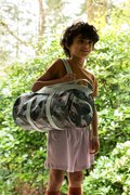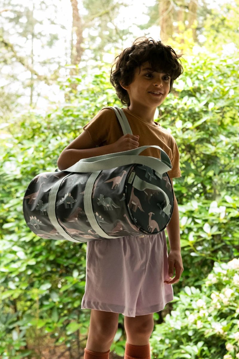 This duffle bag is made from recycled PET bottles! It has a nice cherry pattern on its body. The lining is waterproof, the zippers are from YKK and the shoulder handles are adjustable.