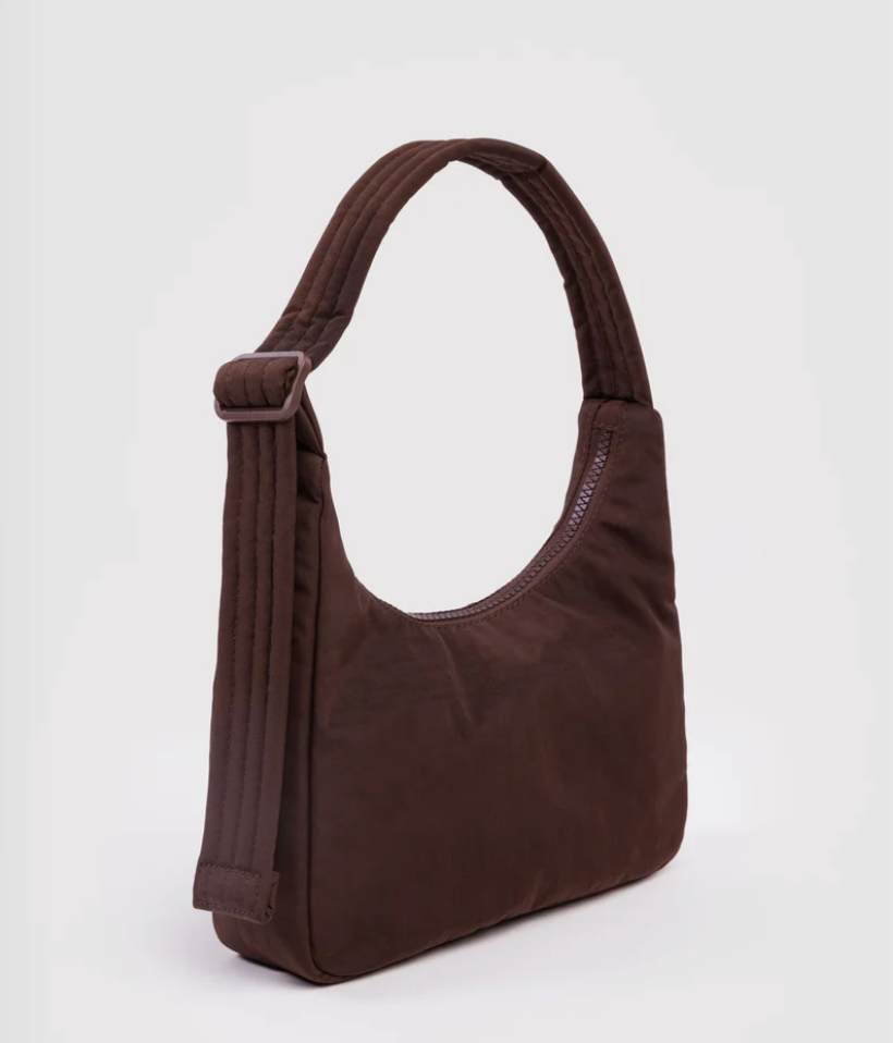 A mini version of our new nylon shoulder bag. Slightly slouchy, slightly structured. Complete with an interior pocket so everything has a place.