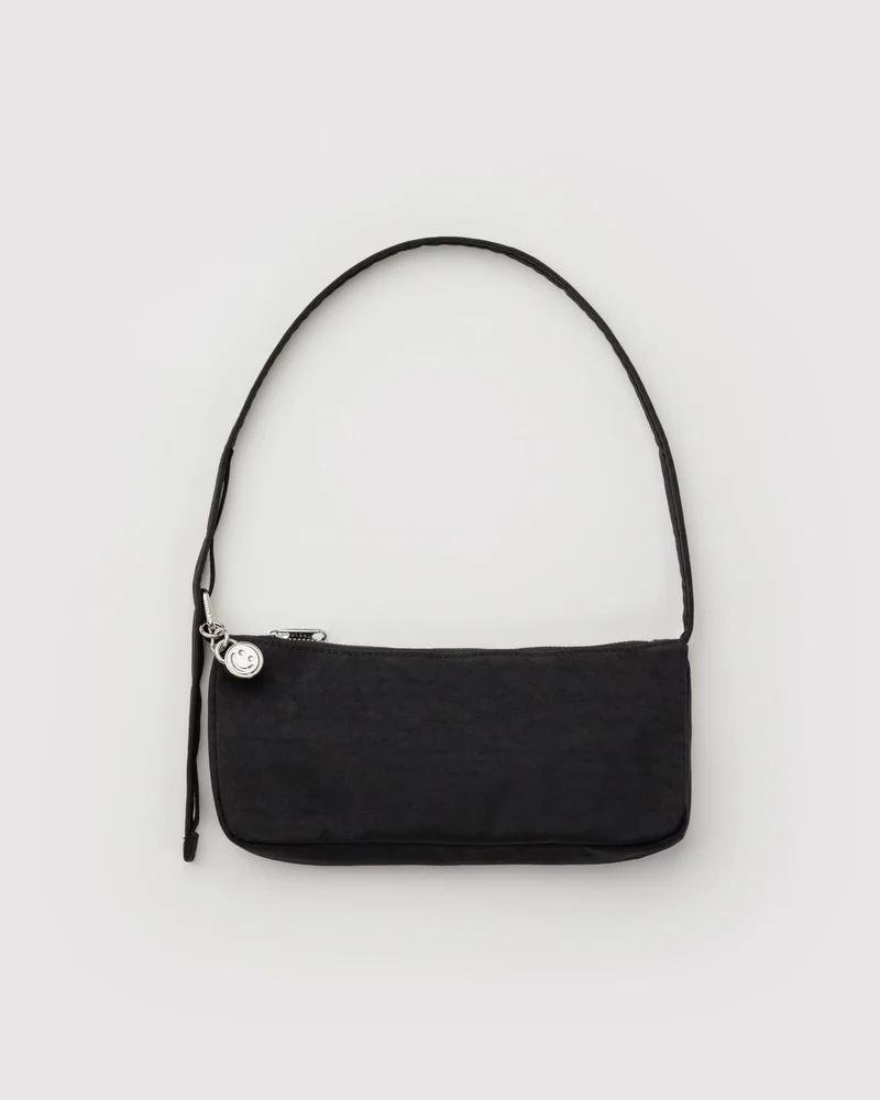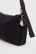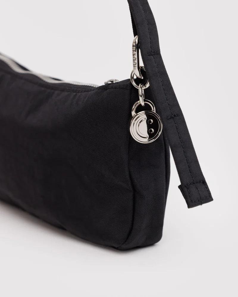 A sleek, compact bag featuring built-in card slots for organization, metal charm, and adjustable strap.
